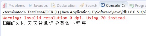 public class TestTess4jOCR {//语言库类型中文:chi_sim,数字加英文:engprivate static final String LANGUAGE = "eng";//语言库位置,里面目前只放了:chi_sim.traineddata(中文),eng.traineddata(英文)private static final String DATA_PATH = "F:\\Workspace\\eclipse_workspace\\tessdata";public static void main(String[] args) {byte[] imageByte =TestTess4jOCR.getImageBytes("F:\\2.jpg");TestTess4jOCR.testDoOCR_ImageByte(imageByte);}public static void testDoOCR_ImageByte(byte[] imageByte) {try {InputStream sbs = new ByteArrayInputStream(imageByte);BufferedImage img = ImageIO.read(sbs);ITesseract instance = new Tesseract();//设置语言库所在的文件夹位置,最好是绝对的,不然加载不到就直接报错了instance.setDatapath(DATA_PATH);//设置使用的语言库类型:chi_sim,eng 中文简体instance.setLanguage(LANGUAGE);String result = instance.doOCR(img);System.out.println("扫描的文本:"+result);} catch (Exception e) {System.err.println("扫描图片文本错误:"+e);}}public static byte[] getImageBytes(String path) {//图片转化为二进制byte[] imageBytes = null;try (FileInputStream fileInputStream = new FileInputStream(new File(path));) {imageBytes = new byte[fileInputStream.available()];fileInputStream.read(imageBytes);} catch (IOException e) {e.printStackTrace();}return imageBytes;}}
