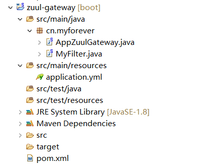 <project xmlns="http://maven.apache.org/POM/4.0.0" xmlns:xsi="http://www.w3.org/2001/XMLSchema-instance" xsi:schemaLocation="http://maven.apache.org/POM/4.0.0 http://maven.apache.org/xsd/maven-4.0.0.xsd"><modelVersion>4.0.0</modelVersion><groupId>cn.myforever</groupId><artifactId>zuul-gateway</artifactId><version>0.0.1-SNAPSHOT</version><parent><groupId>org.springframework.boot</groupId><artifactId>spring-boot-starter-parent</artifactId><version>2.0.0.RELEASE</version></parent><!-- 管理依赖 --><dependencyManagement><dependencies><dependency><groupId>org.springframework.cloud</groupId><artifactId>spring-cloud-dependencies</artifactId><version>Finchley.M7</version><type>pom</type><scope>import</scope></dependency></dependencies></dependencyManagement><dependencies><dependency><groupId>org.springframework.cloud</groupId><artifactId>spring-cloud-starter-netflix-zuul</artifactId></dependency><!-- SpringBoot整合eureka客户端 --><dependency><groupId>org.springframework.cloud</groupId><artifactId>spring-cloud-starter-netflix-eureka-client</artifactId></dependency></dependencies><!-- 注意: 这里必须要添加, 否者各种依赖有问题 --><repositories><repository><id>spring-milestones</id><name>Spring Milestones</name><url>https://repo.spring.io/libs-milestone</url><snapshots><enabled>false</enabled></snapshots></repository></repositories></project>