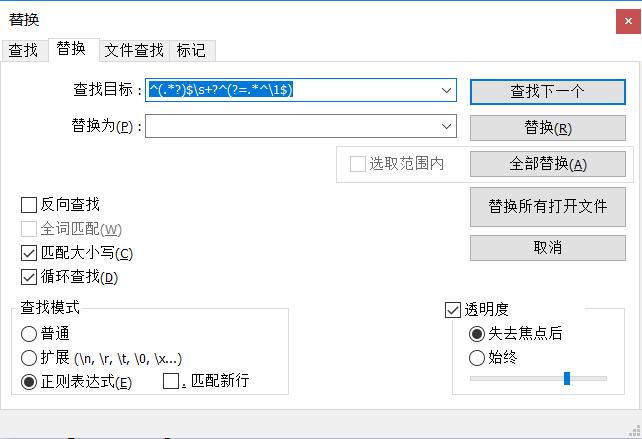 notepad++去重