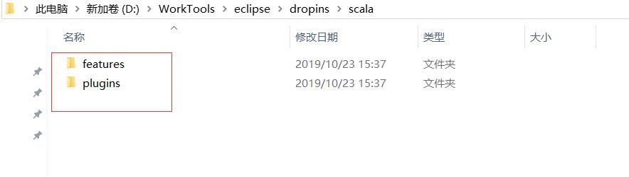 进入现在正在使用的Eclipse的主目录,里面有个“dropin”目录,进入该目录,新建文件夹,取名“scala”,然后计入该目录,将刚才红色框选择的两个文件夹拷贝到这里。